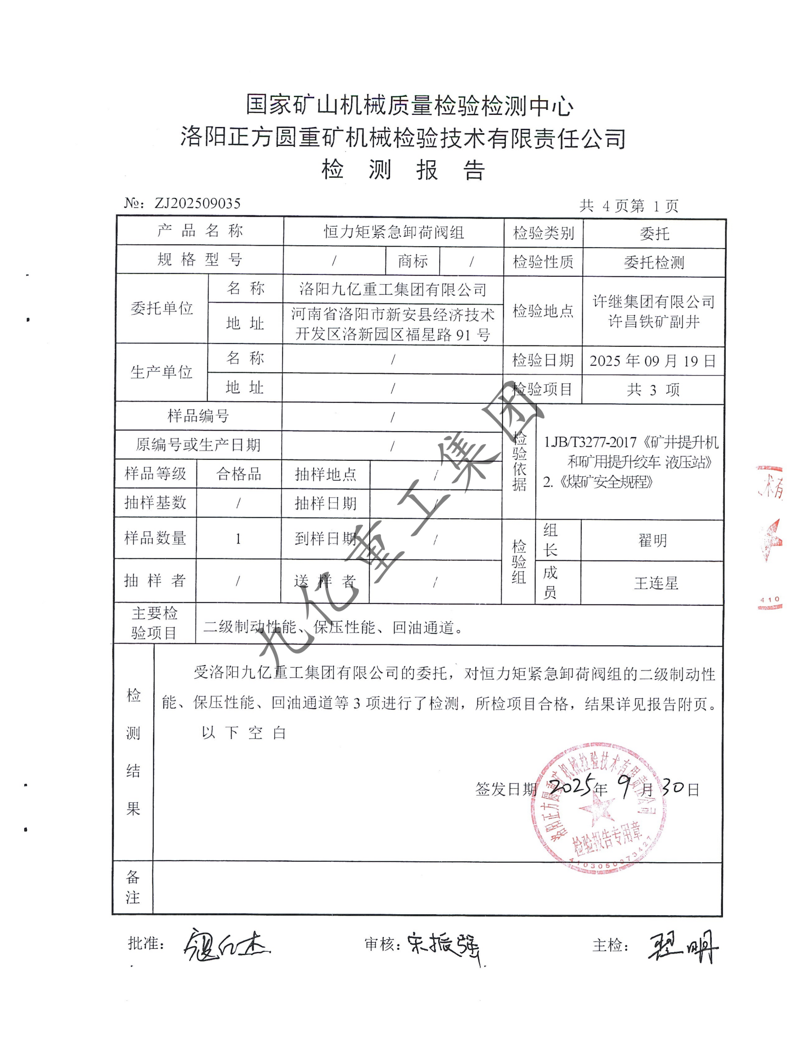 恒力矩緊急卸荷閥組檢驗(yàn)報(bào)告